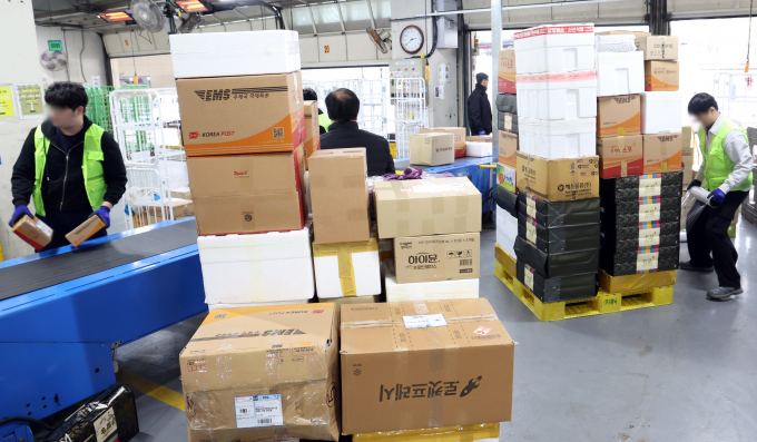 환경부가 '택배 포장규제'에서 아이스팩을 제외하기로 했다. 사진은 지난 6일 경기도 부천시 부천우편집중국에서 직원들이 택배 배송을 위한 분류 작업을 하고 있는 모습./사진=뉴스1
