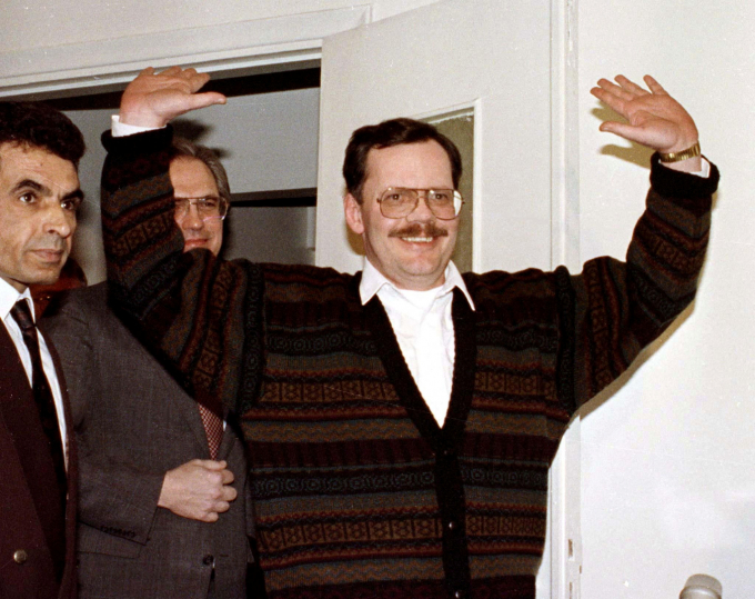 광주 5·18 민주화운동을 알린 테리 앤더슨 기자가 21일(현지시각) 별세했다. 사진은 시리아 다마스쿠스에서 무장 단체에 납치됐다가 석방돼 웃는 얼굴로 기자회견장에 등장한 테리 앤더슨 AP통신 기자. /사진= 로이터