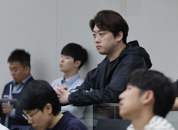 박단 대한전공의협의회(대전협) 비상대책위원장이 대한의사협회(의협) 회장의 '범 의료계 협의체' 추진에 대해 우려를 표했다. 박 위원장이 지난달 30일 오후 서울 종로구 서울대병원 제일제당홀에서 열린 서울대학교 의과대학-서울대병원 교수협의회 비상대책위원회 긴급 심포지엄에서 발표를 듣고 있다. /사진=뉴시스