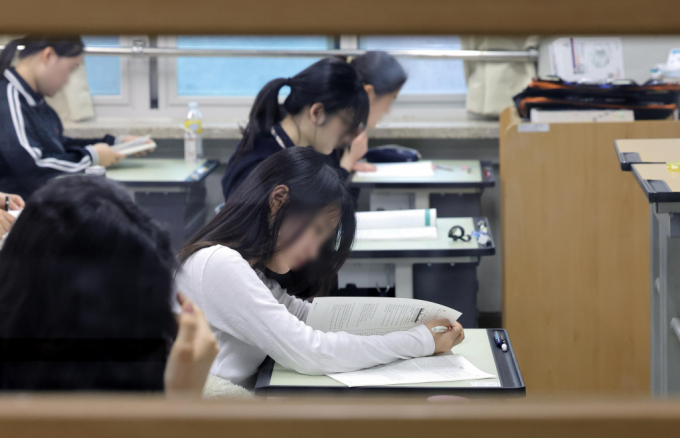 2025학년도 대학수학능력시험(수능) 대비 3월 전국연합학력평가가 시행된 3월28일 서울 강남구 개포고등학교에서 수험생들이 시험 준비를 하고 있다. /사진=뉴시스