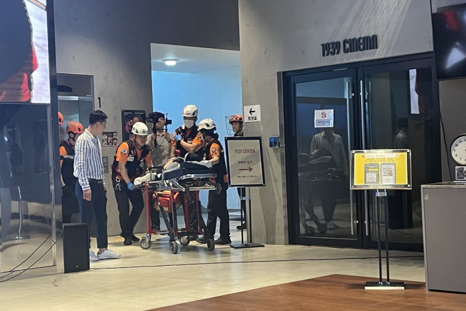 음악역 1939 이용객의 승강기 갇힘 사고를 가정한 ‘승강기 사고 대응 합동훈련’ 현장. /사진제공=가평군