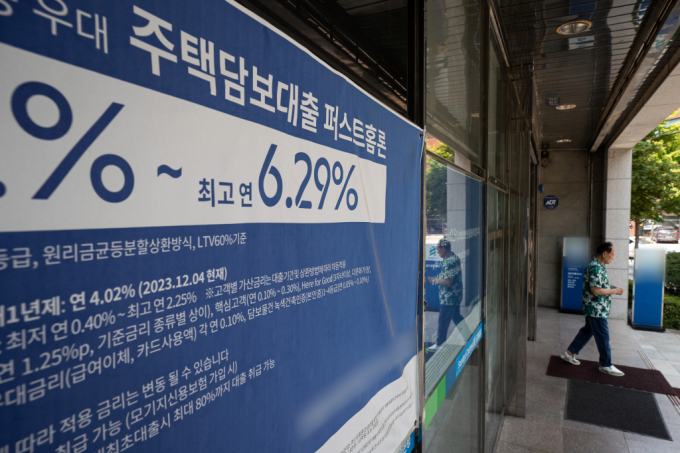 18일 서울시내 한 은행에 주택담보대출 관련 현수막이 걸려 있다. /사진=뉴스1