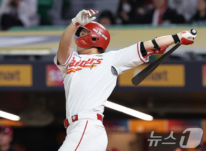 30일 오후 인천시 미추홀구 문학동 SSG랜더스필드에서 열린 프로야구 '2024 신한 SOL 뱅크 KBO리그' LG 트윈스와 SSG 랜더스의 경기, SSG 최정이 6회말 무사 2루에서 역전 투런 홈런을 치고 있다. 2024.5.30/뉴스1 ⓒ News1 김진환 기자