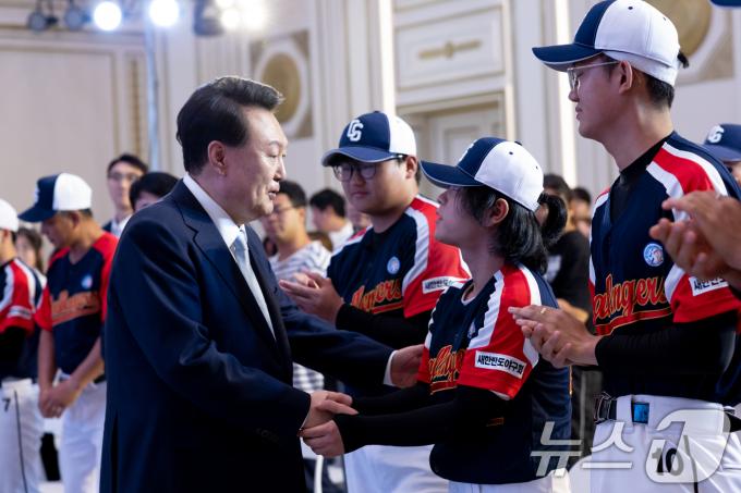 [사진] 탈북민 청소년 야구단 챌린저스 격려하는 윤석열 대통령 뉴스1 제공 |ViEW 217| 2024.07.14 15:20:02 (서울=뉴스1) 송원영 기자 = 윤석열 대통령이 14일 청와대 영빈관에서 열린 탈북민 청소년 야구단 '챌린저스'의 미국 방문 출정식에서 야구단원들을 격려하고 있다. (대통령실 제공) 2024.7.14/뉴스1Copyright © 뉴스1. All rights reserved. 무단 전재 및 재배포, AI학습 이용 금지. <저작권자 © ‘재테크 경제주간지’ 머니S, 무단전재 및 재배포 금지>
