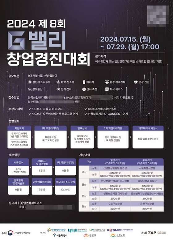 산단공 등이 주관하는 제8회 G밸리 창업경진대회 포스터/사진제공=한국산업단지공단