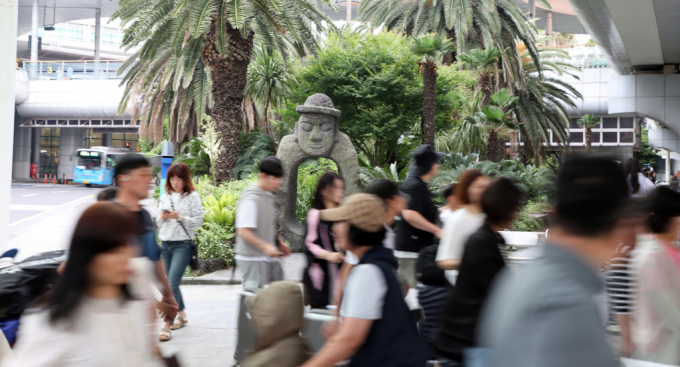 제주공항의 국제선 운항 횟수가 신종 코로나바이러스 감염증(코로나19) 이전 수준을 회복한 것으로 알려졌다. 지난달 6일 제주공항이 제주를 찾은 관광객들로 붐비고 있다. /사진=뉴스1