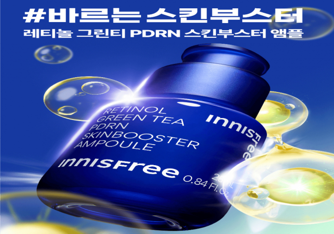 이니스프리가 레티놀과 그린티 PDRN 포뮬러를 활용한 신제품 레티놀 그린티 PDRN 스킨부스터 앰플을 출시했다. /사진=이니스프리