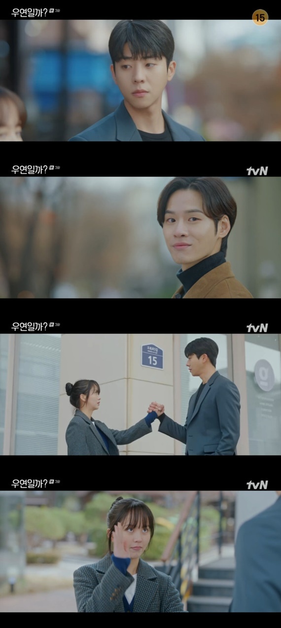 한편, tvN 일일드라마 '우연일까?'는 찌질하고 서툴렀던 첫사랑을 10년 만에 '우연'히 만나 '운명'처럼 얽히며 다시 사랑에 빠지는 첫사랑 기억 소환 로맨스 드라마로 매주 월, 화 오후 8시 40분에 방송된다.