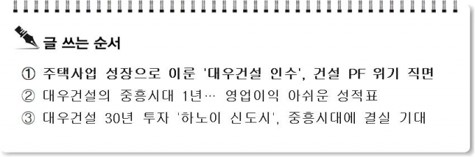 정창선 회장은 2021년 대우건설 인수를 추진하며 글로벌 건설사업 다각화의 비전을 여러 차례 강조했다. 하지만 지난 3년 동안 대우건설의 주택건축 매출 비율은 지속해서 상승했고, 이는 고금리 시기에 부동산 프로젝트파이낸싱(PF) 부실 여파로 돌아왔다.