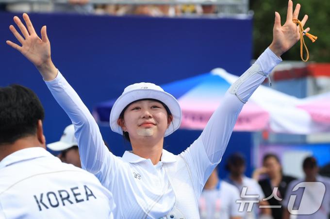 (파리·서울=뉴스1) 이상철 이재상 김도용 권혁준 문대현 안영준 원태성 기자 = 한국 선수단이 대회 8일 차에 사격 양지인(21·한국체대)과 양궁 임시현(21·한국체대)의 금메달을 추가, 금메달 9개를 채웠다. 12년 만에 단일 올림픽 두 자릿수 금메달까지 단 한 개만 남았다.