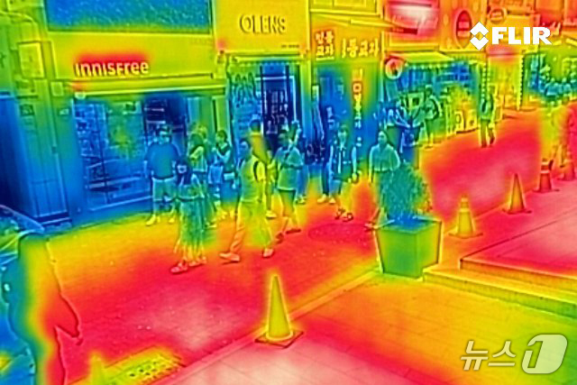 열화상 카메라는 온도가 높을수록 붉은색으로 나타나며 상대적으로 온도가 낮은 곳은 푸른색으로 나타난다. (열화상 카메라 촬영) 2024.8.18/뉴스1