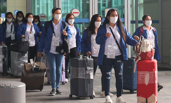 정부가 시범사업 중인 외국인 가사관리사의 비용을 인하하는 방안을 검토 중이다. 지난 6일 외국인 가사관리사 시범사업에 참여하는 필리핀 노동자들이 인천국제공항을 통해 입국한 모습. /사진=머니투데이