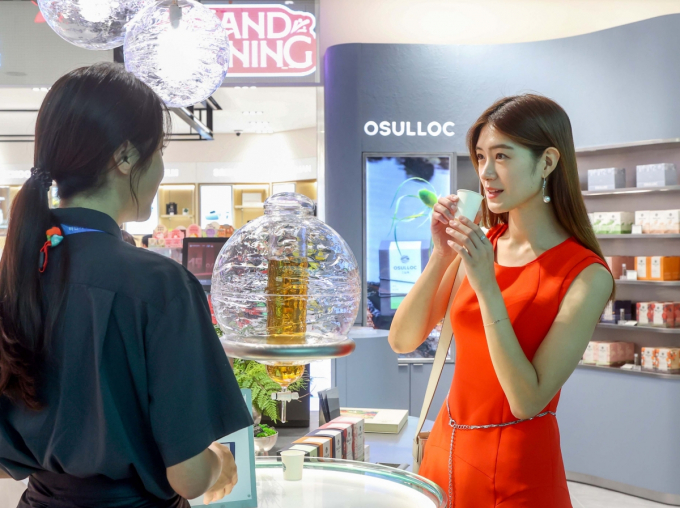 신세계면세점은 '소비자 경험'을 키워드로 개별여행객(FIT) 마케팅에 열을 올리고 있다. 사진은 오설록 매장에서 차를 시음하는 고객 연출 이미지. /사진=신세계면세점