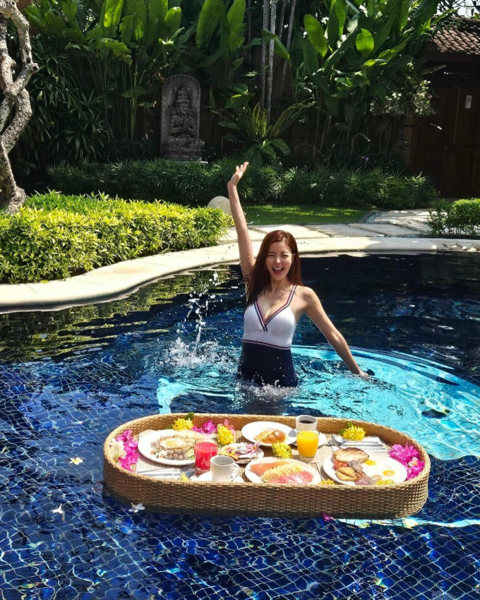 23일 김규리는 자신의 인스타그램에 "플로팅 블랙퍼스트~ 수영장에서 먹는 아침 식사."라며 발리의 한 리조트에서 찍은 사진 여러 장을 게재했다.