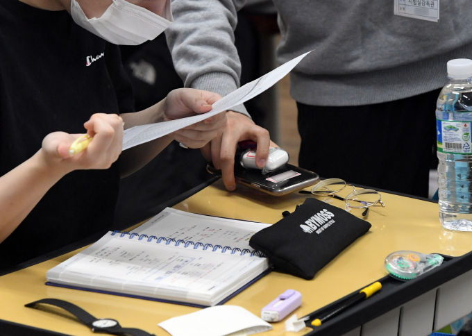 한국교원단체총연합회(이하 '교총')이 국가인권위원회(이하 '인권위')의 학생 휴대전화 수거가 인권침해가 아니라는 결정에 "환영한다"는 입장을 밝혔다. 사진은 2024년 대학수학능력시험을 치루는 수험생들이 핸드폰을 제출하는 모습./사진=뉴시스