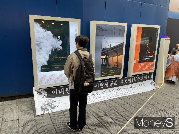 골목에 마련된 추모 공간엔 차가운 가을비가 내렸다. /사진=유찬우 기자