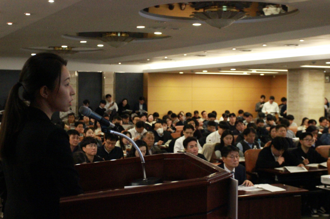 내년도 건설·부동산 경기는 회복과 하락이 혼조를 이룰 것으로 예상됐다. 사진은 6일 열린 '2025년 건설·부동산 경기전망 세미나'에서 김성환 부연구위원이 발표하는 모습./사진=한국건설산업연구원
