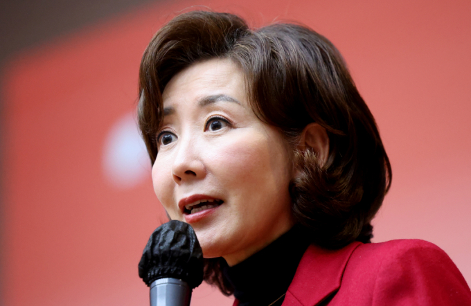 나경원 국민의힘 의원이 26일 대구 수성구 대구시교육청에서 열린 특별강연회에서 ‘인구위기 내일은 없어지나?'를 주제로 강연하고 있다./사진-뉴시스