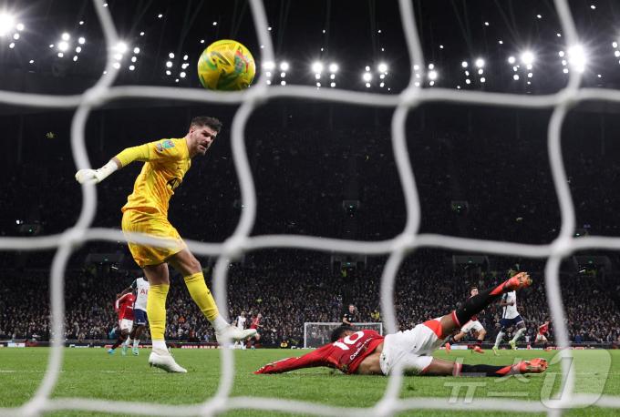 토트넘 홋스퍼의 프레이저 포스터 골키퍼는 20일(한국시간) 열린 2024-25 리그컵 8강 맨체스터 유나이티드전에서 치명적 실수로 2골을 허용하는 등 부진했다. ⓒ 로이터=뉴스1