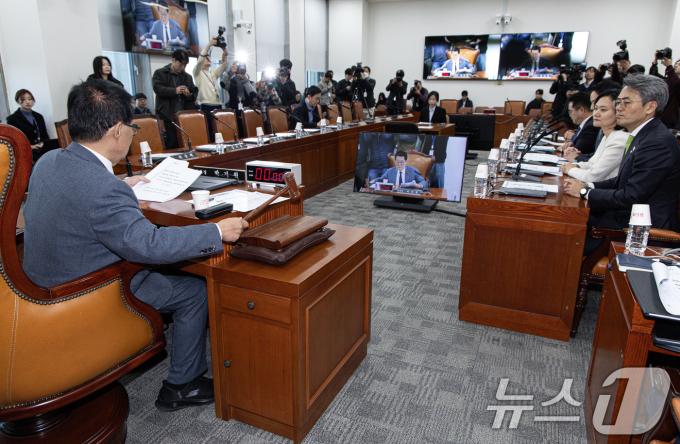 박지원 헌법재판관 선출에 관한 인사청문특별위원회 위원장이 18일 오전 서울 여의도 국회에서 열린 헌법재판관 선출에 관한 인사청문특별위원회 제1차 전체회의에서 의사봉을 두드리고 있다. 이날 국민의힘은 헌법재판관 인사청문특위에 불참했다. 2024.12.18/뉴스1 ⓒ News1 이재명 기자