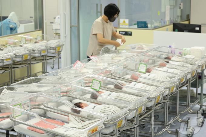 저출생 문제가 심각해 정부가 대책에 고심인 가운데 19일 인천 미추홀구 아인병원에 마련된 신생아실에서 신생아들이 휴식을 취하고 있다. 2024.6.19/뉴스1 ⓒ News1 신웅수 기자