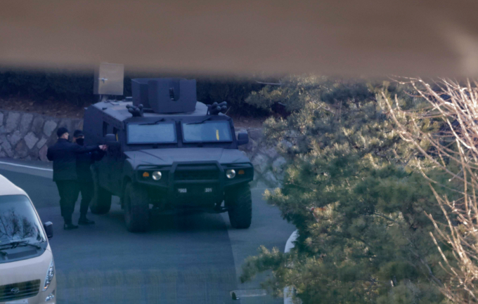 합동참모본부가 3일 윤석열 대통령 체포영장 집행을 위해 관저에 투입된 고위공직자범죄수사처(공수처)와 대치 중인 경호부대에 대해 "경호처가 통제하는 부대"라고 밝혔다. 사진은 3일 서울 용산구 관저 입구 안에서 장갑차가 이동하는 모습. /사진=뉴시스