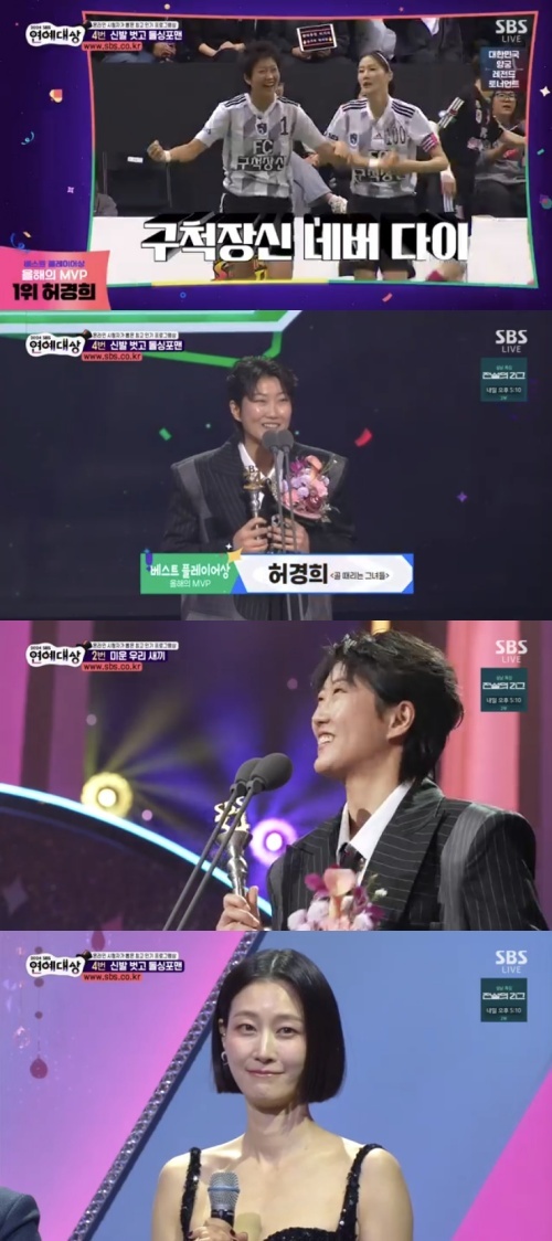 허경희는 3위 정혜인, 2위 사오리를 제치며 '골때녀' 에이스임을 입증했다. 그는 "이 자리에 온 것만으로도, 축구하면서 많은 사랑받은 것도 감사한데, 이런 상까지 주셔서 감사하다"라고 소감을 밝혔다.