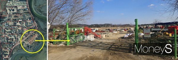 도로(제방)는 포장이 안 돼 차들이 한 번 지나가면 먼지가 뿌옇게 날리고 화물차나 폐기물 수거 차량에서 유출된 것으로 보이는 기름도 엿보인다. 어느 때부턴가 남동구는 국유지인 제방을 도로로 사용하게 하면서 이런 차들이 수시로 드나들게 됐고 이를 근거로 남동구 재생과는 업체들에 적치 허가를 내줬다.